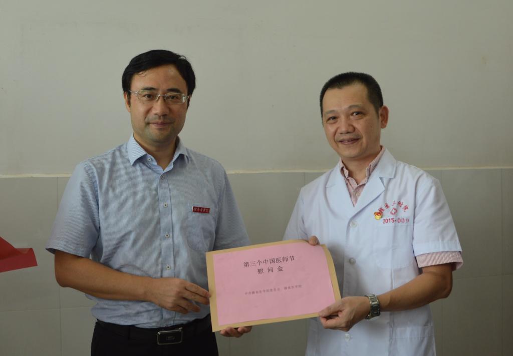 August 19 was the 3rd China Doctors’ Day. President Liu Qian and Vice-President Huang Ruizhong led a delegation to pay a visit to TAHGMU on behalf of GMU. They presented flowers and bonus to all doctors’ representatives.