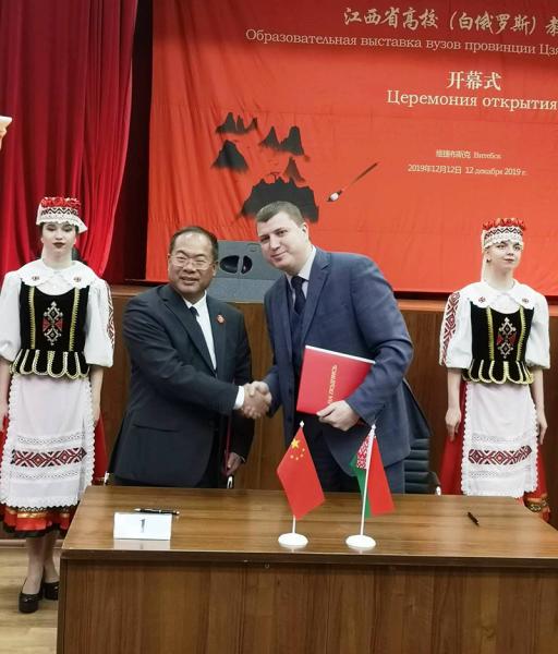 On December 12, "Jiangxi University (Belarus) Education Exhibition" in 2019 opened at the National University of Vitebsk in Belarus. Ye Junming made a speech at the opening ceremony and signed cooperation agreements with Vitebsk National Medical University, Vitebsk National Veterinary College and OLSA National Medical College.
