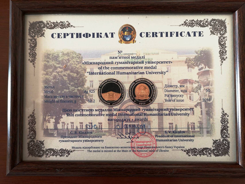 On December 9, "Jiangxi University (Ukraine) Education Exhibition" in 2019 opened at Bristol Hotel in Odessa. On behalf of GMU, Vice-President Ye Junming signed a cooperation agreement with Odessa National Medical University and International Humanitarian University (Ukraine) and he was awarded "Medal of Commemoration" by International Humanitarian University. During the exhibition, Consul General of Odessa Chen Yurong and Wang Lixia visited GMU’s booth.
