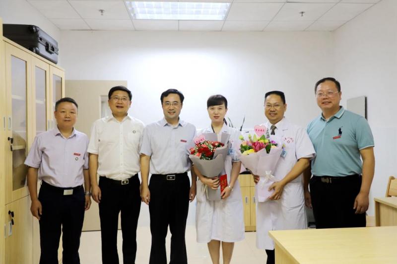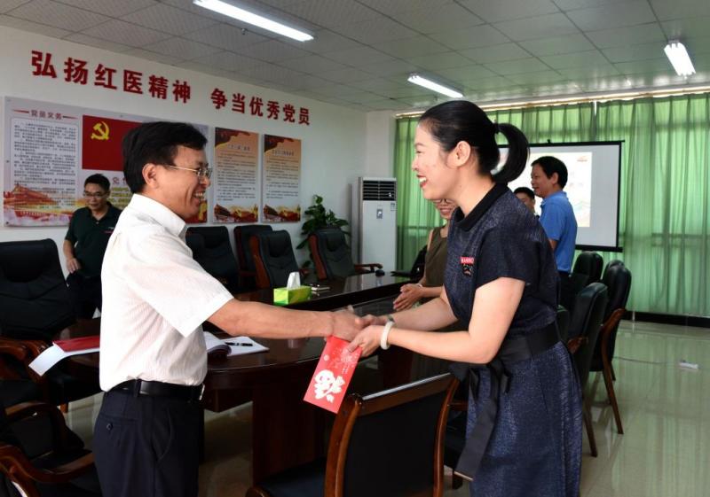 Accompanied by GMU Vice-President Zhang Xiaokang, President Liu Qian visited 5 teachers’ representatives, including Shuai Ping from the Department of Pathology, Ren Ling from the Department of Ultrasound Medicine, and Wang Huabin from the Pediatrics Department of School of the First Clinical Medicine Sciences. Liu Qian talked with teachers and presented flowers and consolation money.