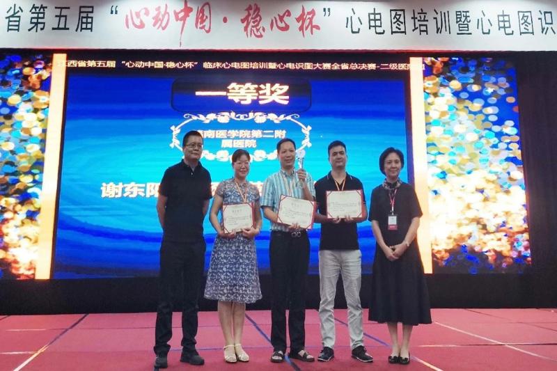 Recently, the 5th "Xindong China · Steady Heart Cup" Clinical Electrocardiogram Training and Jiangxi Province Electrocardiogram Recognition Contest Final were held in Nanchang. The Second Affiliated Hospital of GMU (SAHGMU) dispatched a team to participate and won the first prize of the Level 2 hospitals group.