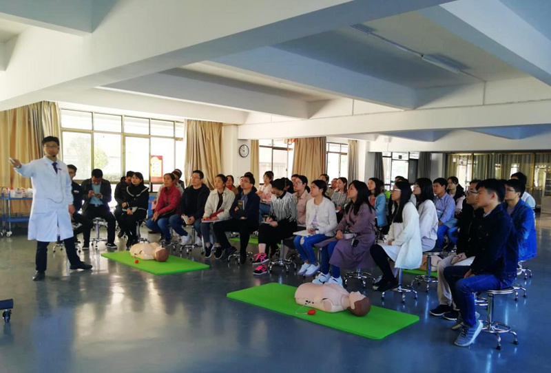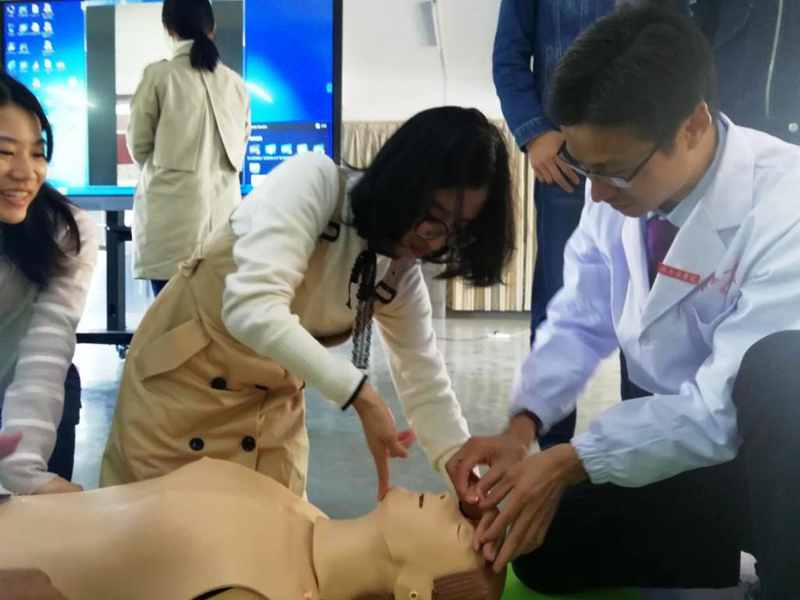 On the afternoon of October 29, GMU carried out the first aid skills training for the new staff in terms of cardiopulmonary resuscitation and defibrillation in the Medical Practical Skills Training Center (MPSTC) of Huangjin Campus. More than 50 new staff took part in it.