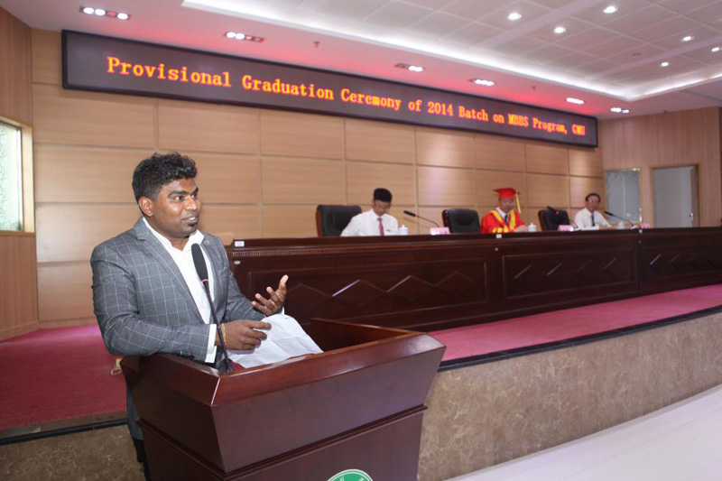 Dr. Karthick, an outstanding GMU alumnus and teacher representative, first extended his congratulations to the graduates, hoping them to grasp the present and fight for the future.
