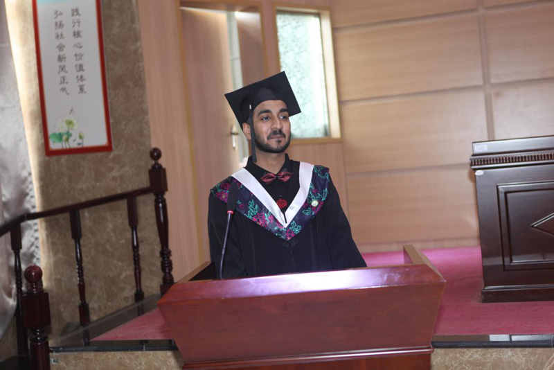 "Thank GMU for giving us an opportunity to pursue our dreams. Thank teachers for their tireless teachings. Thank other staff who have helped us in our study and life, and thank my friends who live together day and night!" An international student representative AFFAN SHAHAB drew a complete end to his study in GMU with much “thanks”.