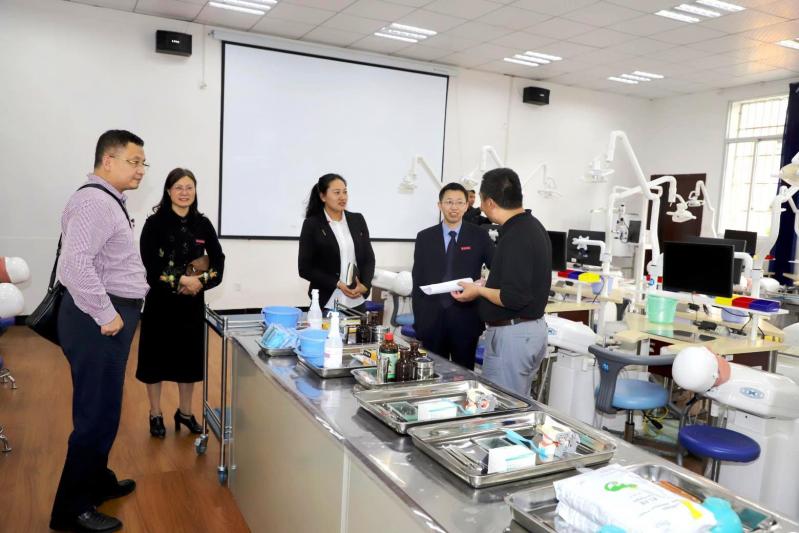 Deng Wei made a self-eva luation report from the aspects of specialty construction, talent training program, teacher team construction, teaching conditions and utilization, teaching process and management, practical teaching and main achievements. The eva luation experts exchanged with teachers, teaching managers and students’ representatives, concentrated on reviewing declaration materials, sampling education and teaching files, questioning and answering questions, and on-the-spot inspected the stomatology laboratory and the Department of stomatology in Huangjin Branch of FAHGMU.