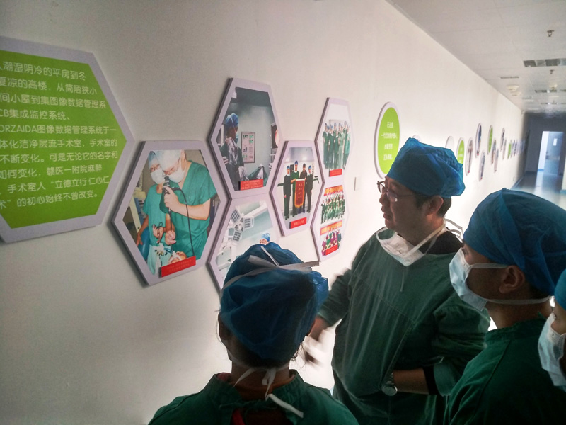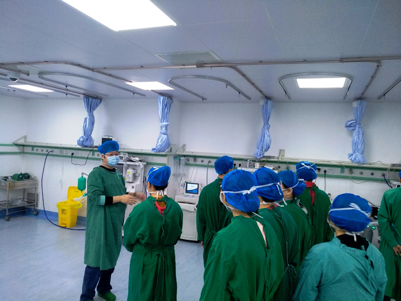 On the morning of March 29, Batch 2017 undergraduate students majoring in anesthesiology came to the operating room of Huangjin Area for "Job experience". Zhong Maolin, director of the Anesthesia Department, firstly carried out the asepsis concept education, and then led the students to visit the Anesthesiology Department. He introduced the evolution of the Department, the Department culture, personnel structure, existing equipments and facilities in detail, etc., focusing on the duties of clinical anesthesia. Then he arranged the students to observe the operation one by one. Watching the operation process and listening to the anesthesiologist's on-site explanation of the operation specifications, especially the humanistic knowledge of traditional Chinese medicine during the operation, the students all said that they had gained a lot from the "Job experience" and felt very good.