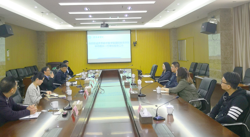 On April 12, Xindan, the Dean of International Education School of Qiqihar Medical University (QMU), and his delegation visited GMU. Huang Dong, the Dean of the School of International Education GMU (SIEGMU), Zhong Fu, the associate Dean, and the rest SIEGMU members, attended the meeting.