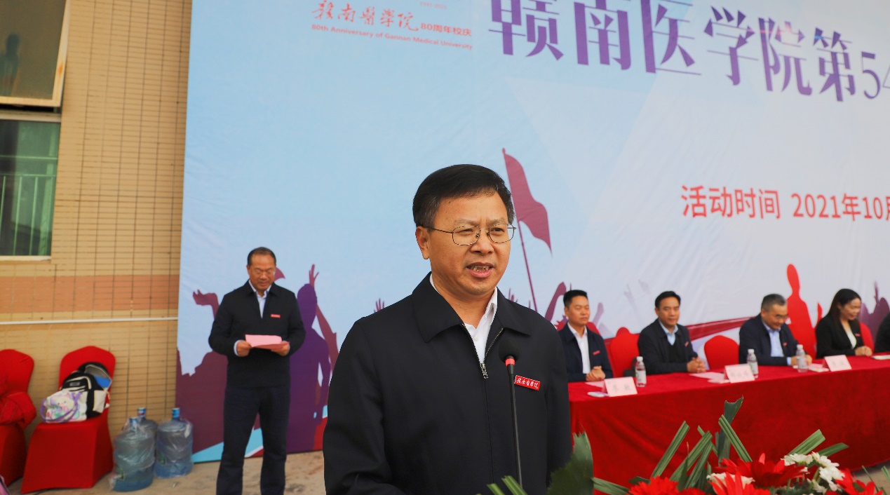 Li Gongjin, Secretary of the Party Committee of GMU, announced the opening of the 54th Sports Meeting.