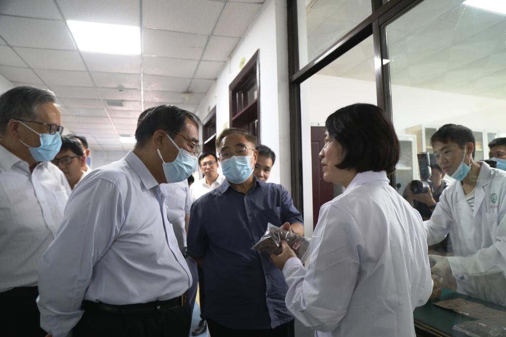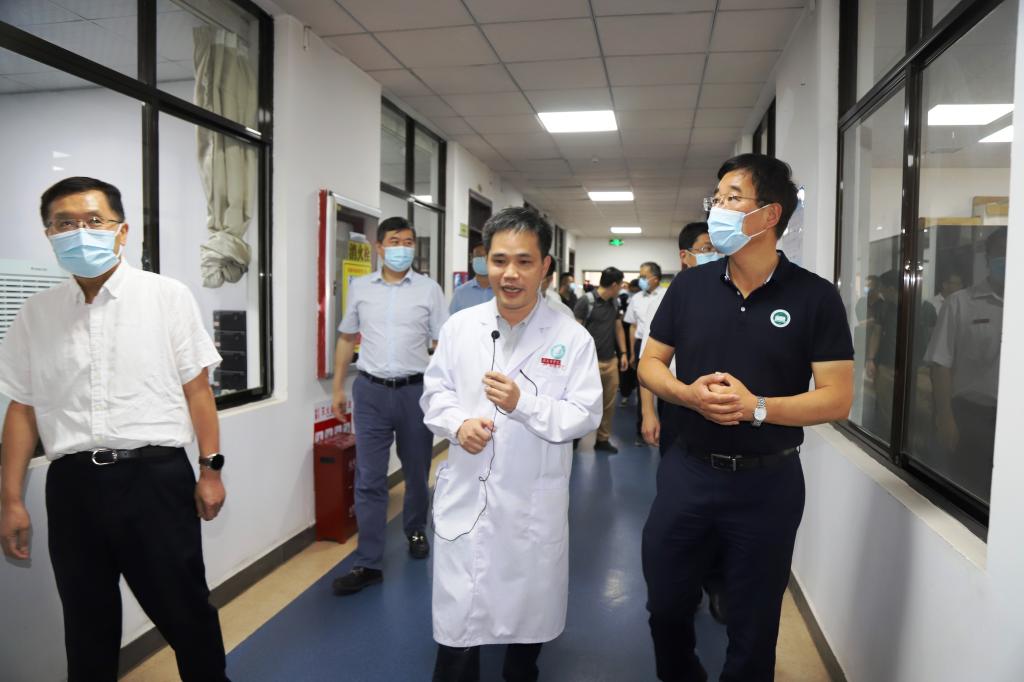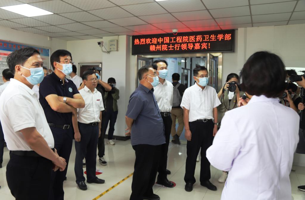 On the afternoon of September 3, 9 academicians from the Department of Medicine and Health of the Chinese Academy of Engineering (CAE), namely, Wang Chen, Zhang Boli, Li Song, Zhan Qimin, Dong Jiahong, Han Demin, Zhang Volunteer, Cong Bin, Lin Dongxin, paid a visit to the Scientific Research Center of GMU together.