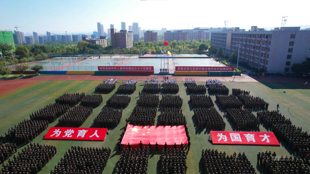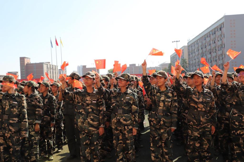 Before the ceremony, a passionate and unique military training singing activity kicked off on the track and field. Students sang red classics, paying tribute to the 75th anniversary of the founding of the People's Republic of China.