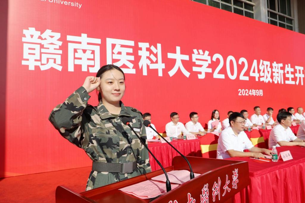Shen Xinyue, a student from the undergraduate class of Traditional Chinese Medicine in the SP, led all freshmen to recite the "Medical Students’ Oath" together, which the resolute oath resounded throughout the audience.