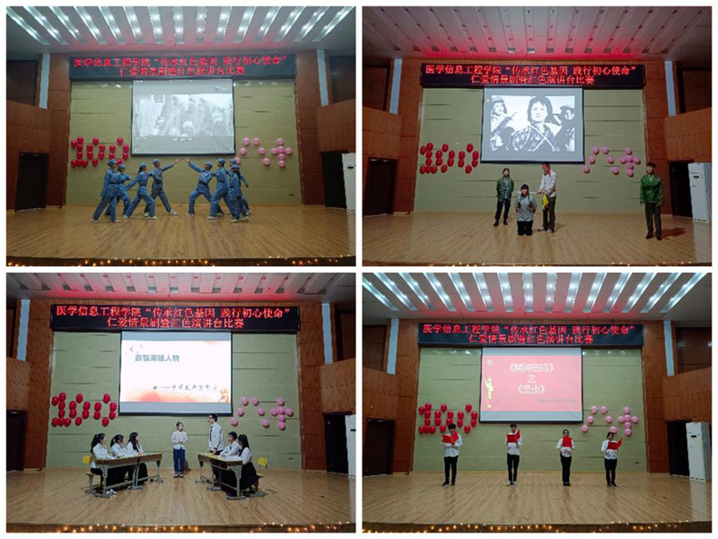On the evening of November 29, the School of Medical Information Engineering (SMIE) held a Red Sitcom with the theme of "Inheriting the Red Sprits & Practicing the Original Aspirations and Missions" and "Red Podium" Competition in the Huangjin Campus, which was attended by Lei Yin, deputy secretary of the SMIE Party Committee, counselors of Students’ Affairs Office and over 300 students.